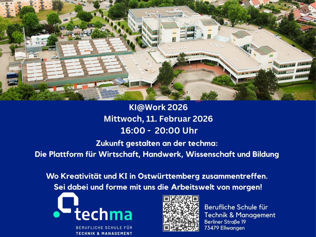 Seien Sie dabei und erleben Sie die Zukunft der Arbeitswelt – gestaltet und organisiert von den Nachwuchstalenten der techma Ellwangen!